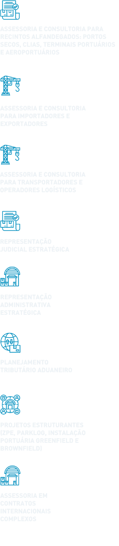 Atuamos essencialmente com Importadores, Exportadores, Terminais Portuários, Armazéns Gerais, Operadores Logísticos e Recintos Alfandegados e entidades representativas, tanto na prevenção como na atuação em litígios complexos do setor.